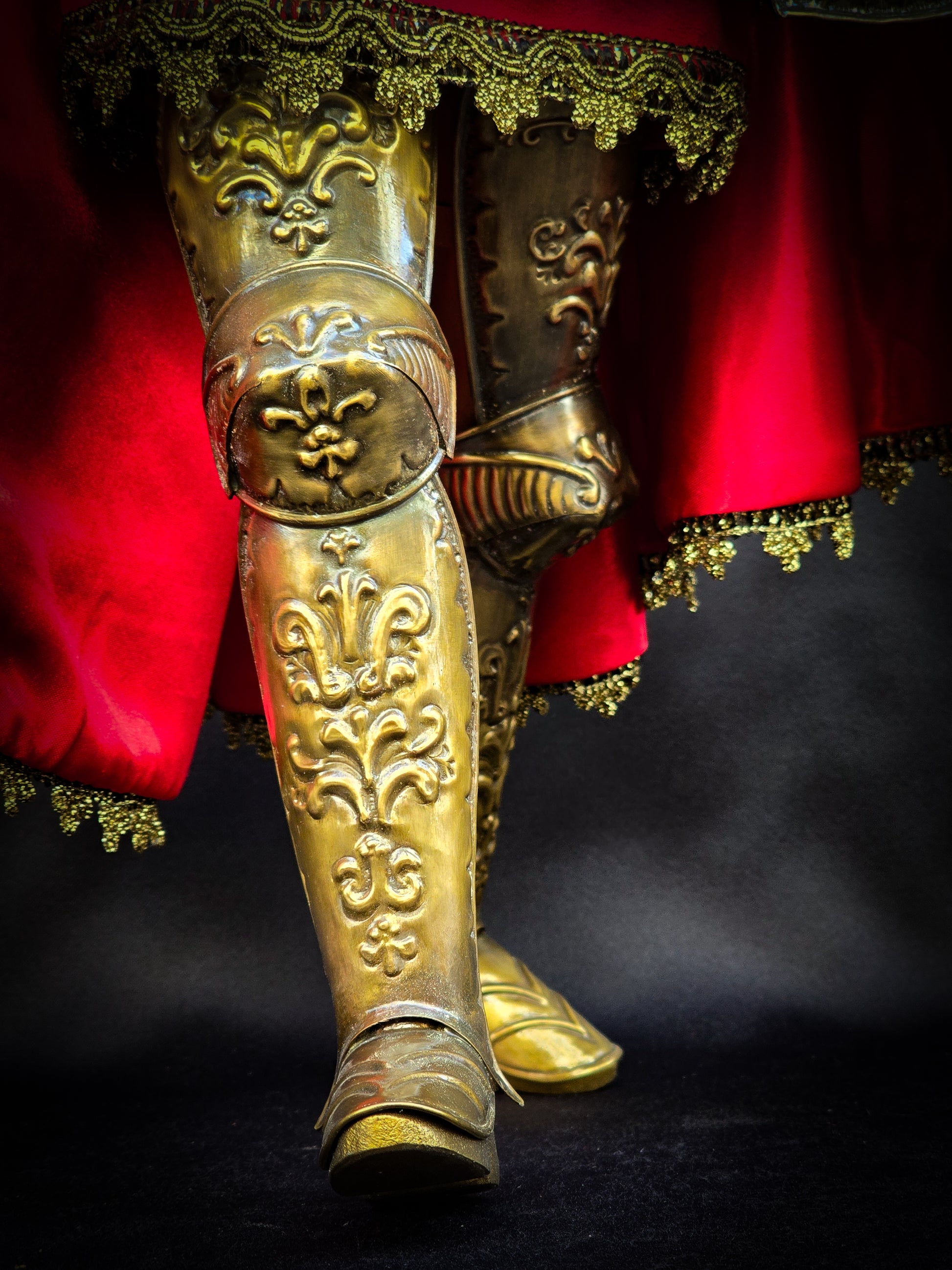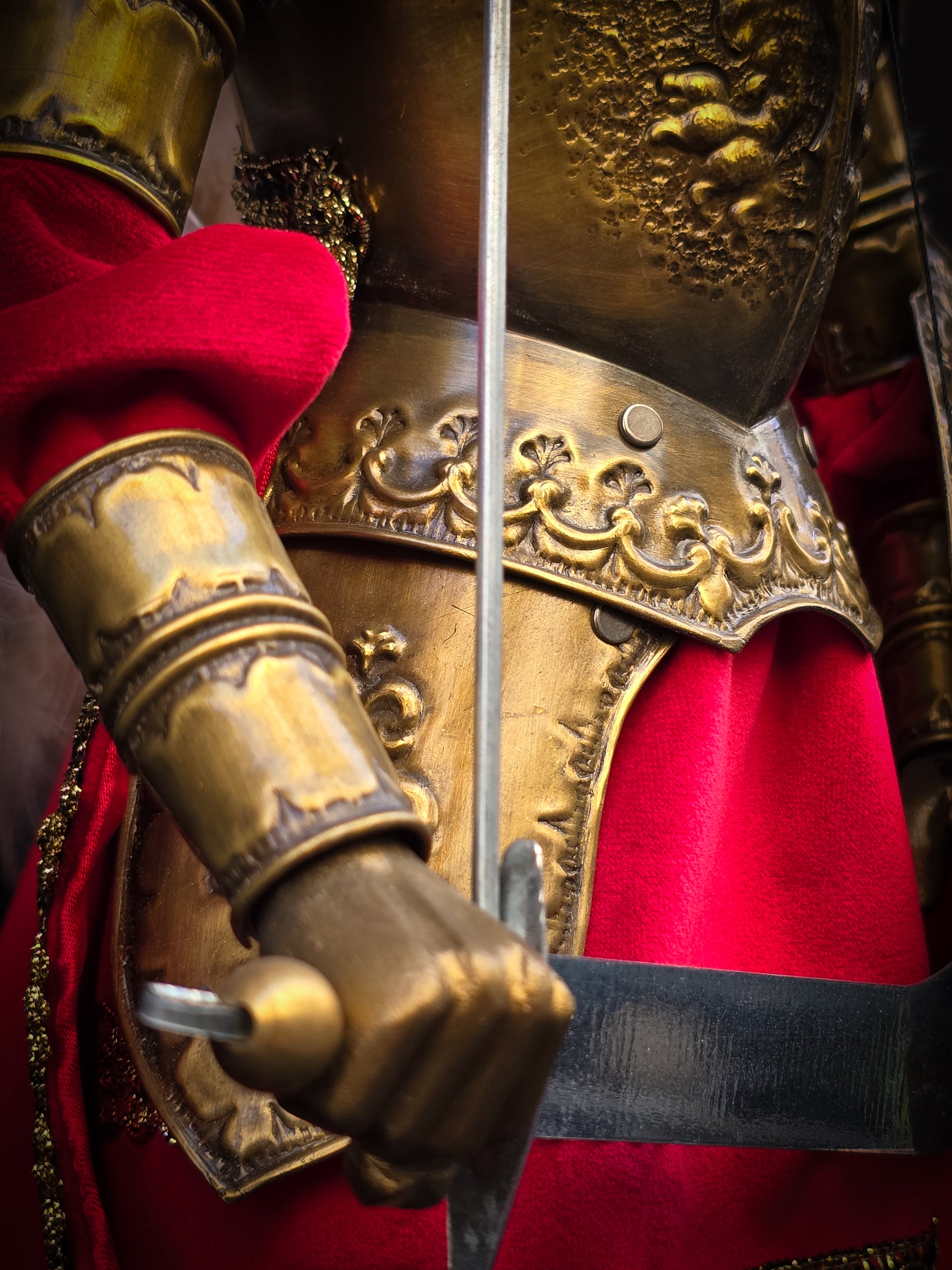 Pupo siciliano altezza 55 cm, armatura in ottone brunito lavorato secondo le più antiche tecniche di cesello e sbalzo su paletto.