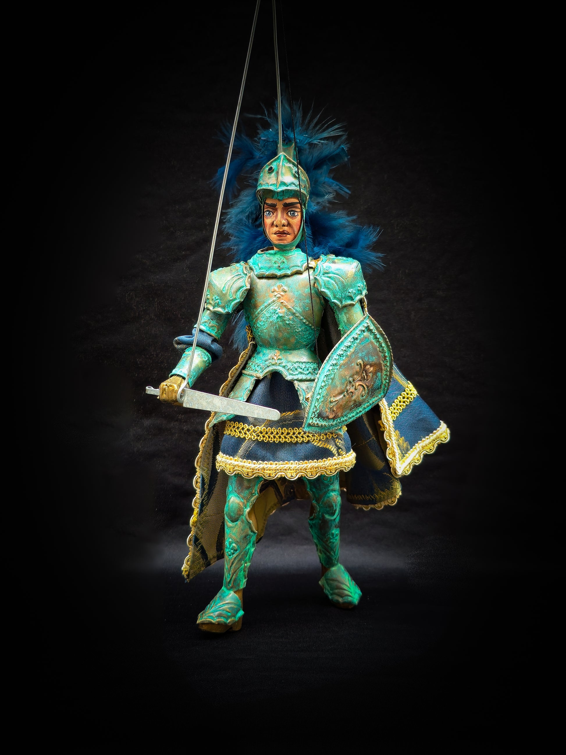 Pupo siciliano altezza 27 cm, armatura in rame lavorata a cesello e portata alla sua massima ossidazione.